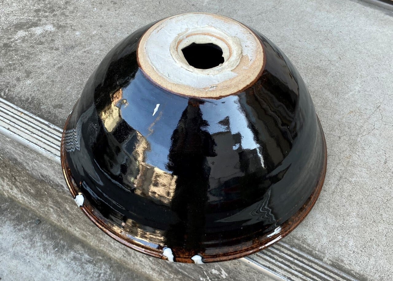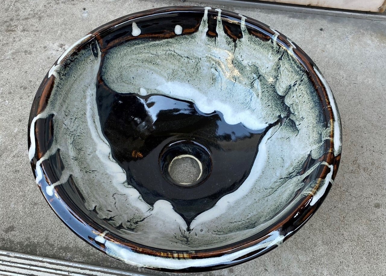 信楽焼の洗面ボールです。信楽焼の素朴さが映える、茶道具の歴史を担う信楽焼陶工のDNAを受け継ぐ手洗器サンエイ製の「利楽」シリーズです。
