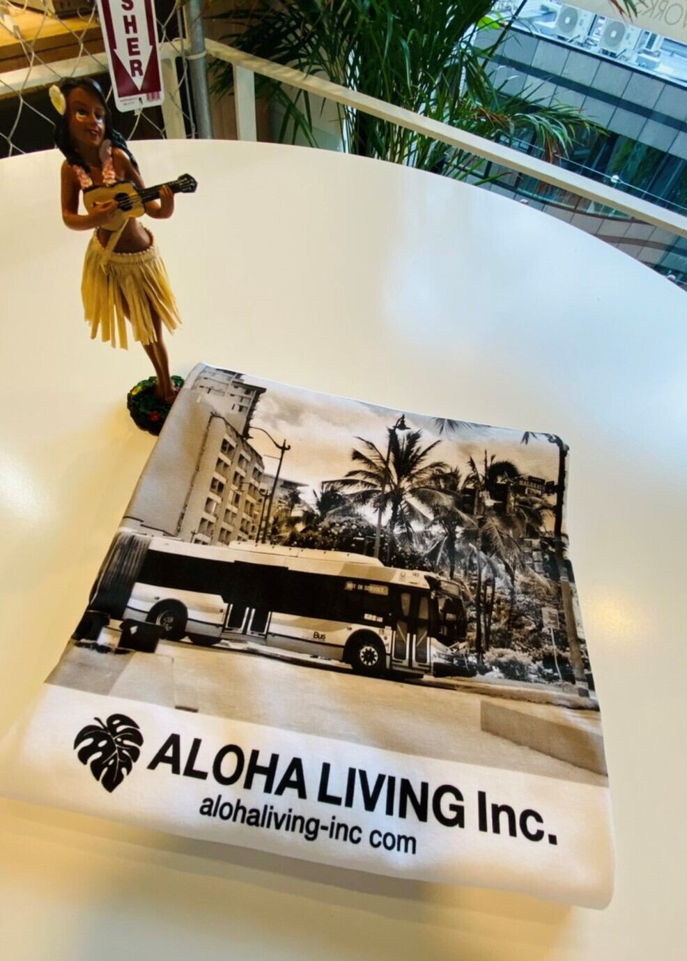 フロントにはオアフ島を走る”The Bus”がプリントされています。バッグは無地です。